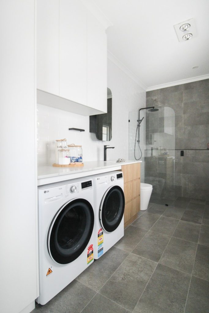 One of the biggest trends right now—and something I’m fully behind—is transforming your laundry into a bathroom.