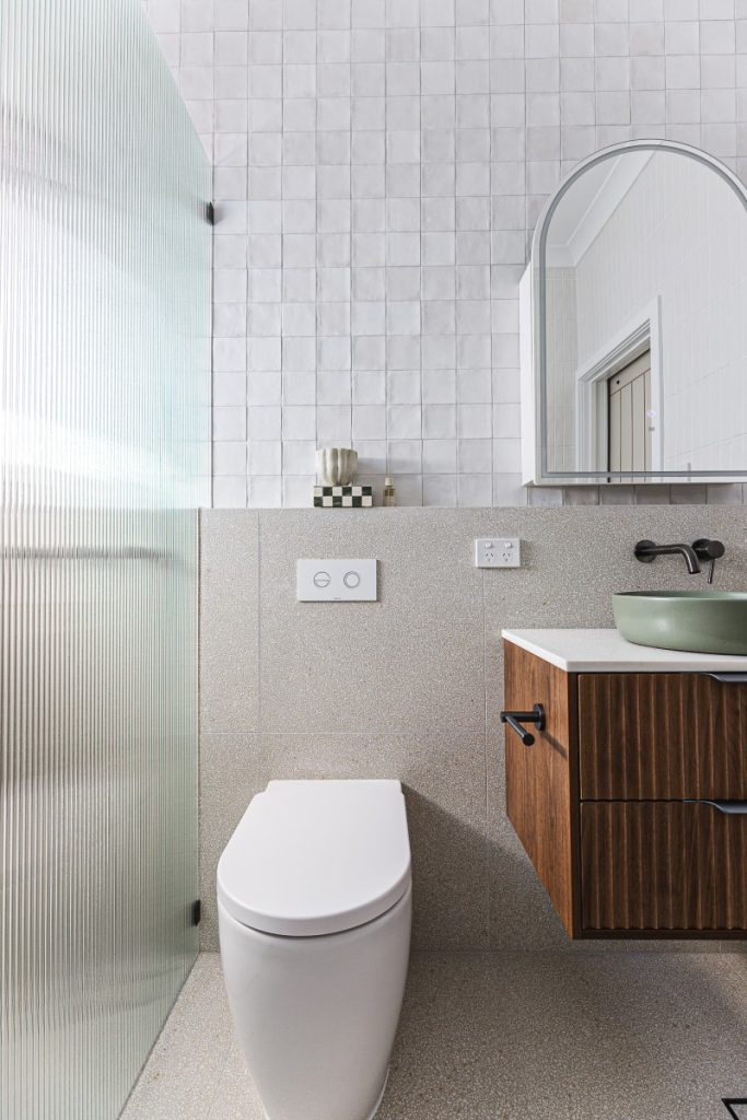 With that in mind, the key design elements to look out for include real terrazzo, porcelain panels, microcement, timber-clad walls (such as VJ panels), and the rising popularity of groutless bathrooms.