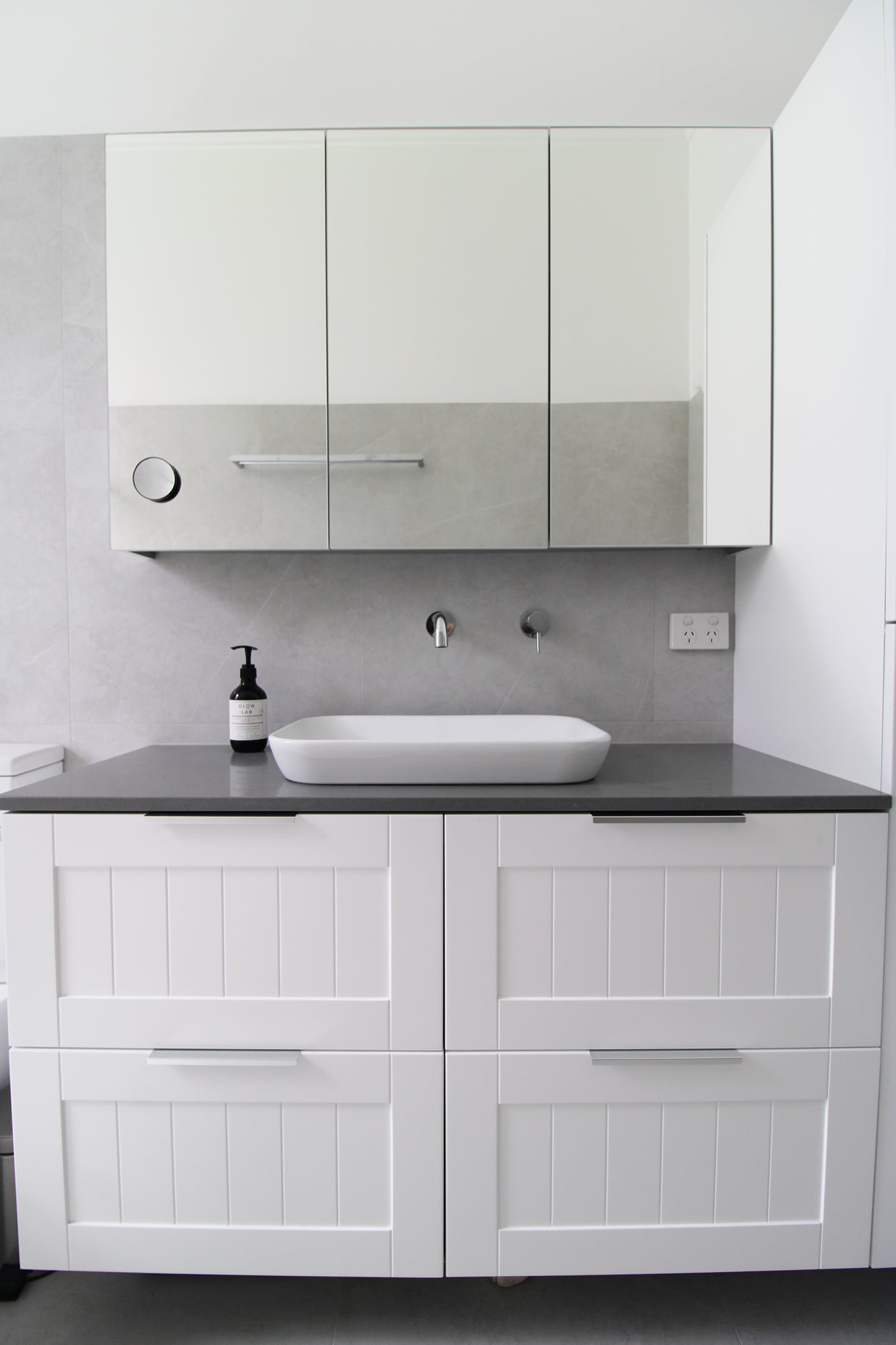 What used to be a laundry with the bare bones of plumbing has been transformed into an all in a row set up that makes this tiny space feel so much bigger.