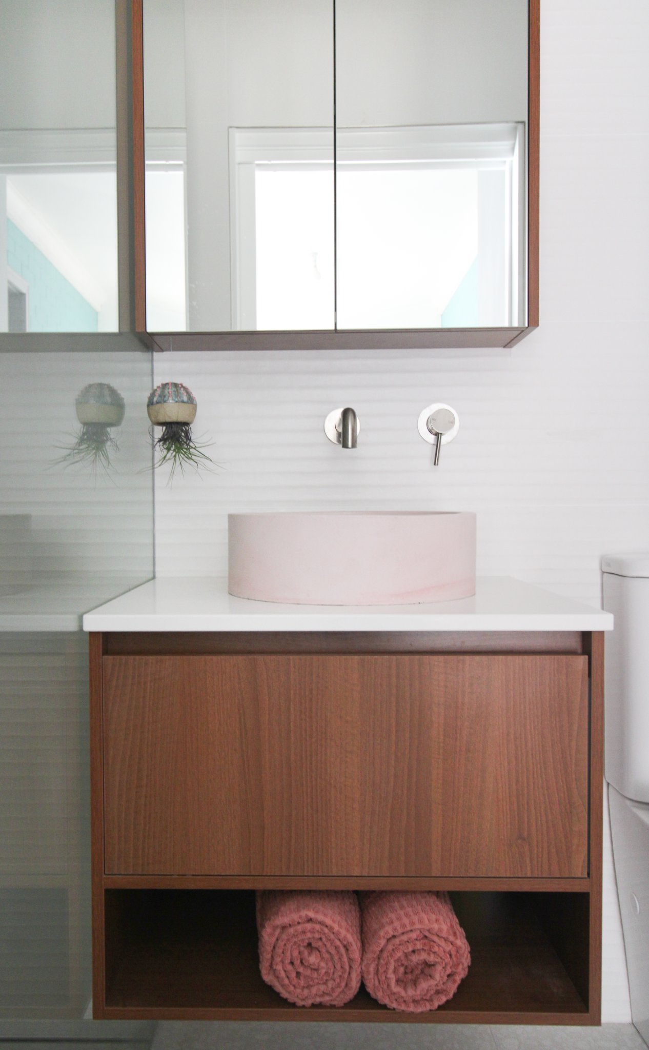 Storage is king for so many people and these owners were no exception with the large wall hung vanities and high mirror cabinets.