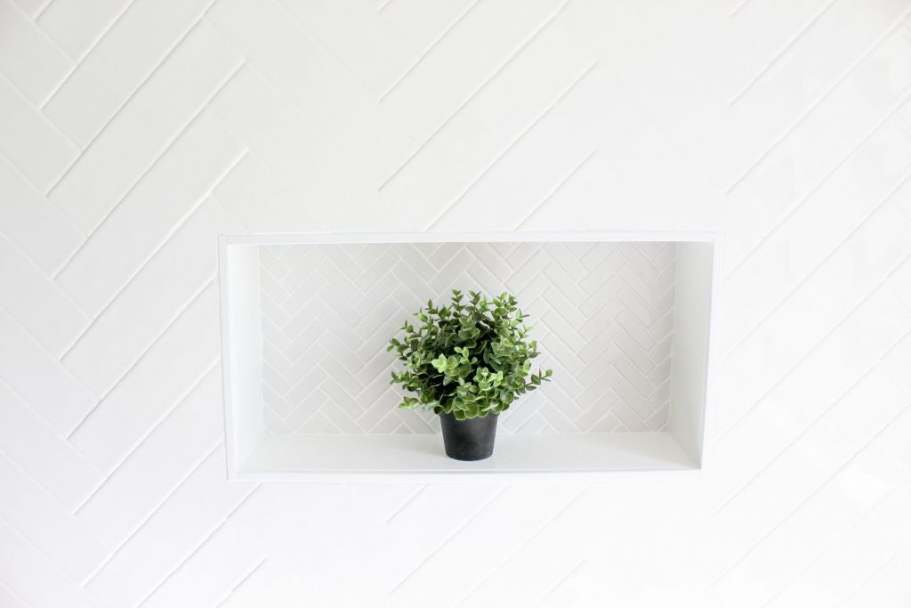 You take two rectangular tiles and you create a ‘V’ shape by resting the bottom of one tile against the side of another; ensuring the edges are flush. Repeat this over and over again. As you build a row of these V’s, the pattern takes the form of a fish spine – hence the name ‘herringbone’.