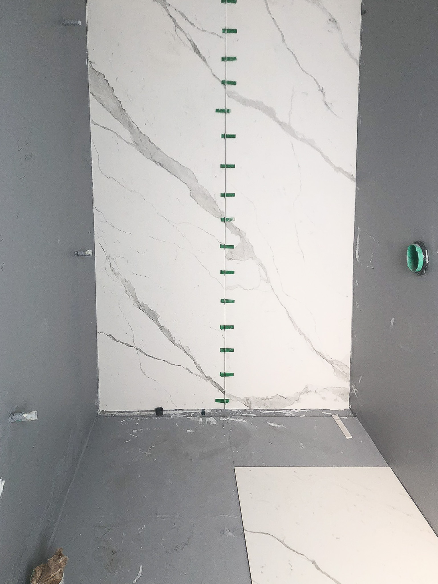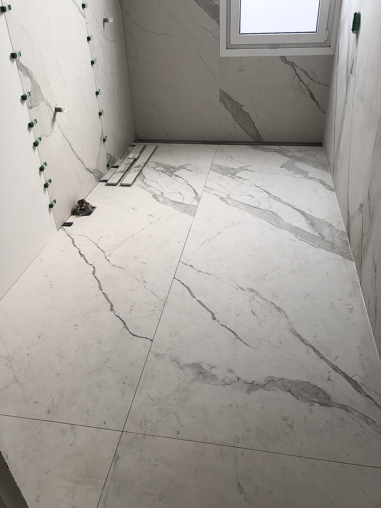Our very experienced tiling duo of Laszlo and Luigee though have worked with large format tiles like these many a time and you can see from the results the guys did an incredible job.